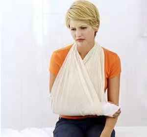 一旦發(fā)生脫臼,應(yīng)囑病人保持安靜、不要活動,更不可揉搓脫臼部位。如脫臼部位在肩部,可把患者肘部彎成直角,再用三角巾把前臂和肘部托起,掛在頸上,再用一條寬帶纏過腦部,在對側(cè)腦作結(jié)。