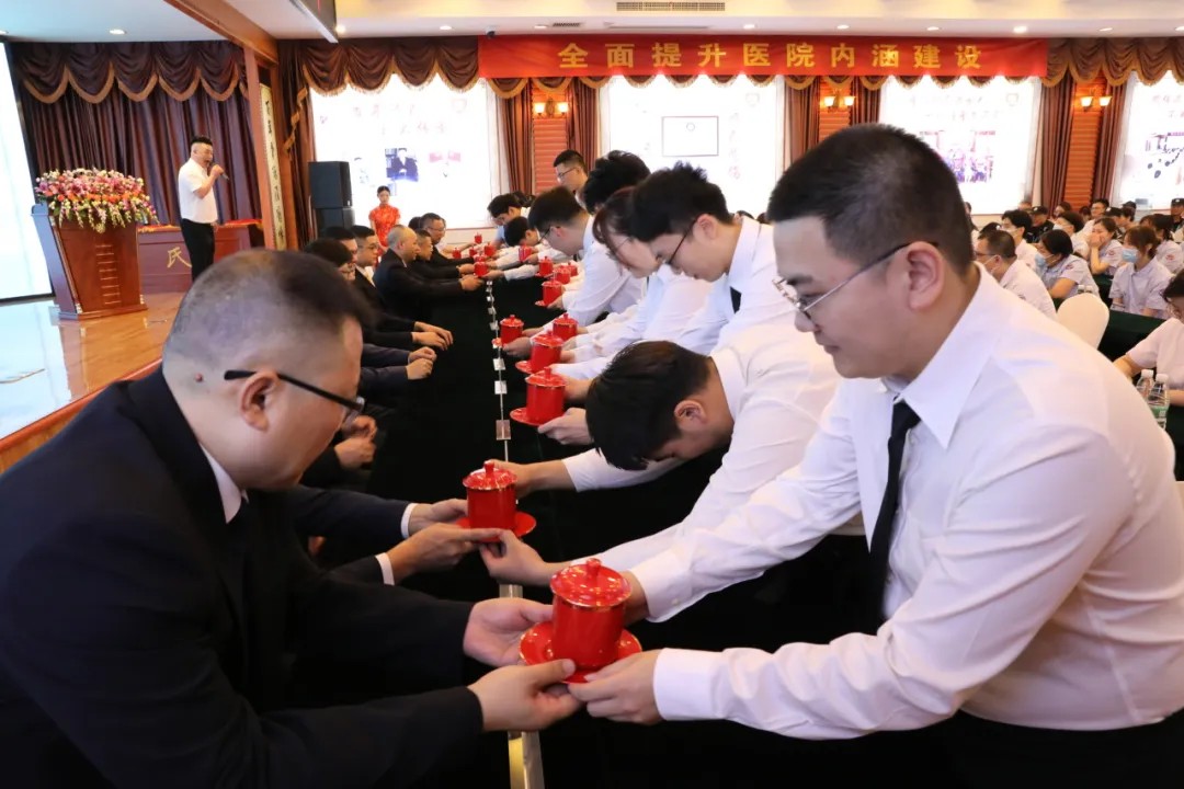 “在我步入顧鶴傳醫(yī)院的時刻,謹(jǐn)莊嚴(yán)宣誓……為顧氏骨傷的發(fā)展和人類的身心健康奮斗終身!”,慶典大會開始前,在顧氏四代掌門人顧岳全先生的主持下,我院舉行了短暫又意義深遠(yuǎn)的拜師儀式。