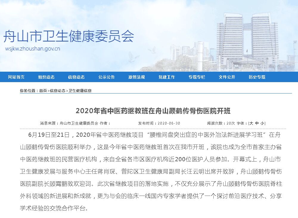 2020年省中醫(yī)藥繼教班在舟山顧鶴傳骨傷醫(yī)院開班