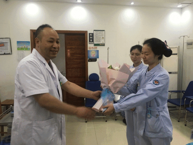 執(zhí)行院長??瞪o護士們贈送鮮花