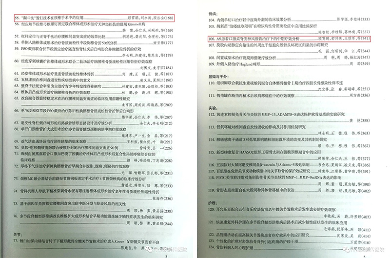 尤其值得一提的是,在骨傷年會所收錄的論文集中,我院有7篇論文入選在冊,可是占了我市醫(yī)療機(jī)構(gòu)上榜論文總數(shù)的三分之一呢~