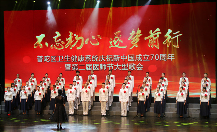 昨晚,普陀區(qū)衛(wèi)生健康系統(tǒng)“不忘初心·逐夢前行”慶祝新中國成立70周年暨第二屆醫(yī)師節(jié)大型歌會(huì)在普陀保利大劇院舉行。我院50多位演職人員上臺(tái)獻(xiàn)唱,以飽滿的熱情、嘹亮的歌聲抒發(fā)了醫(yī)務(wù)工作者的心聲。