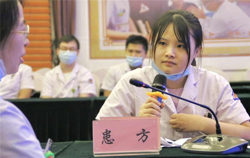 在第二項“理論考核與醫(yī)患溝通”中,選手們隨機(jī)抽取題目,圍繞具體病例問診技巧、術(shù)前溝通等多方面,通過真實情景的演繹,展示醫(yī)務(wù)人員在面對病人時如何用真心、耐心、愛心換取患者的安心、放心與舒心,展現(xiàn)了我院醫(yī)務(wù)人員的服務(wù)禮儀和專業(yè)水平。