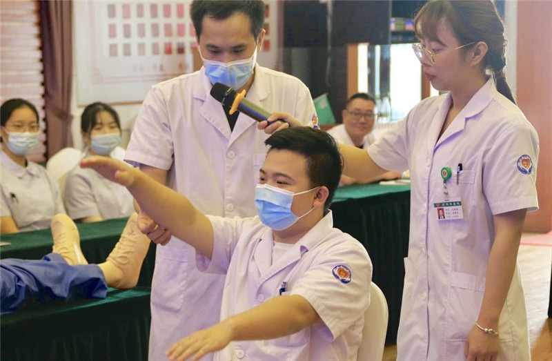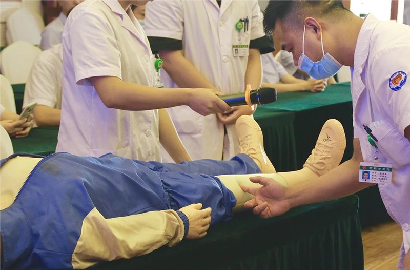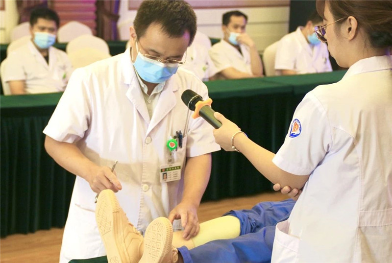 為喜迎第三個“中國醫(yī)師節(jié)”,激勵醫(yī)師大力弘揚“敬佑生命、救死扶傷、甘于奉獻(xiàn)、大愛無疆”的崇高精神,有效改善醫(yī)療質(zhì)量,提高醫(yī)務(wù)人員綜合素質(zhì),更好地為廣大患者提供優(yōu)質(zhì)、安全、滿意的醫(yī)療服務(wù),今天下午,我院在行政四樓多功能會議廳舉辦了臨床醫(yī)生技能評比大賽。大賽由醫(yī)教科牽頭組織,院部領(lǐng)導(dǎo)及相關(guān)臨床科室負(fù)責(zé)人擔(dān)任評委。