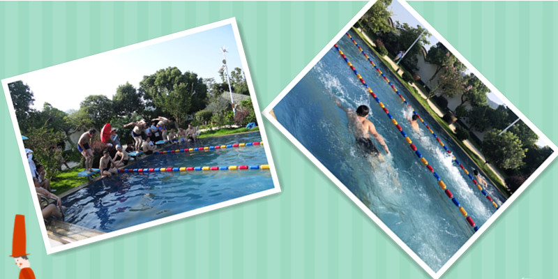 文化基地的活動(dòng)室內(nèi),因?yàn)楦刹柯毠兊牡絹沓錆M了歡聲笑語。室內(nèi)的活動(dòng)如此精彩紛呈,炎熱的夏天怎么可以少得了與水的親密接觸呢!鶴傳游泳健將們個(gè)個(gè)摩拳擦掌,準(zhǔn)備移師泳池一決高下。