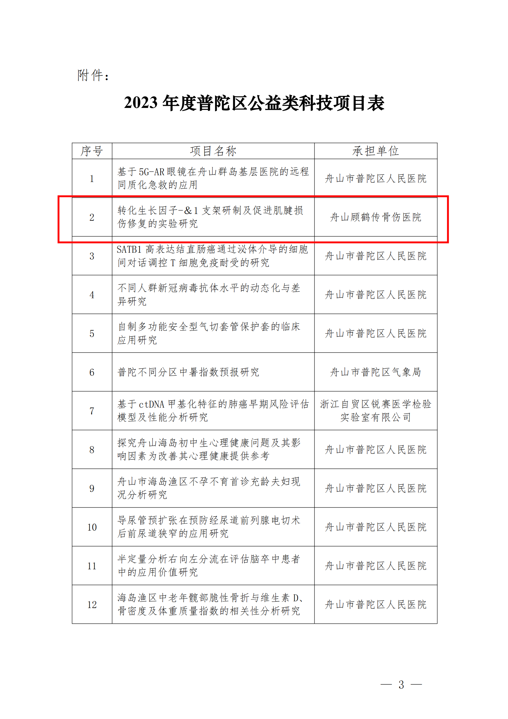 我院《轉(zhuǎn)化生長因子-β1支架研制及促進(jìn)肌腱損傷修復(fù)的實驗研究》被納入2023年度普陀區(qū)公益類科技項目